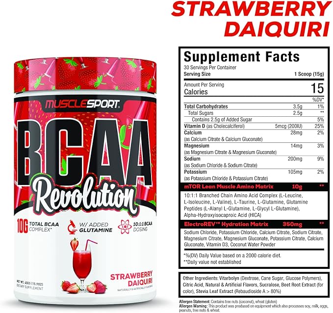 Musclesport BCAA Revolution Amino Acid Powder Supplement for Men & Women - Intra Workout Training Complex - Recovery Supplement… (Strawberry Daiquiri, 30 Servings)