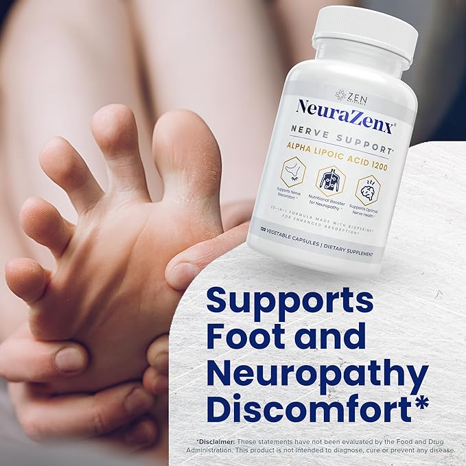 Zen Nutrients NeuraZenX Nerve Support & Peripheral Neuropathy Support Supplement with 1200mg Alpha Lipoic Acid (ALA), Benfotiamine, L-Carnitine, and Turmeric