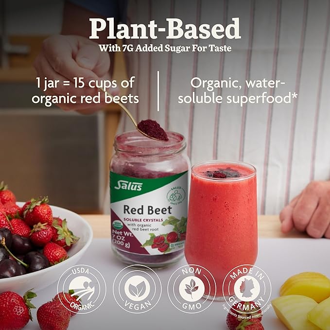Floradix Salus Red Beet Crystals - Organic Nutritional Beet Root Powder Mix - Superfood Powder Supplement with Vitamin C, Folate, Magnesium & Potassium - 7 Oz
