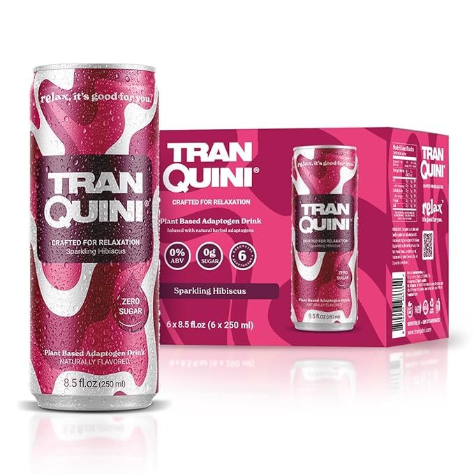 - OUR UNIQUE 6 ADAPTOGEN MIX: Adaptogens are just fancy talk for plants that help you deal with stress. They’re like a mini-vacay for your body, helping you bounce back and keep your balance. With 1 out of 3 consumers seeking beverages with calming ingredients, Tranquini hits the spot. Our unique mix of Ashwagandha, Lemon Balm, Chamomile, Green Tea Extract, Passionflower and Lavender offer an unmatched social tonic. Enjoy guilt-free pleasure when looking for a refreshing, hydrating drink crafted for relaxation.