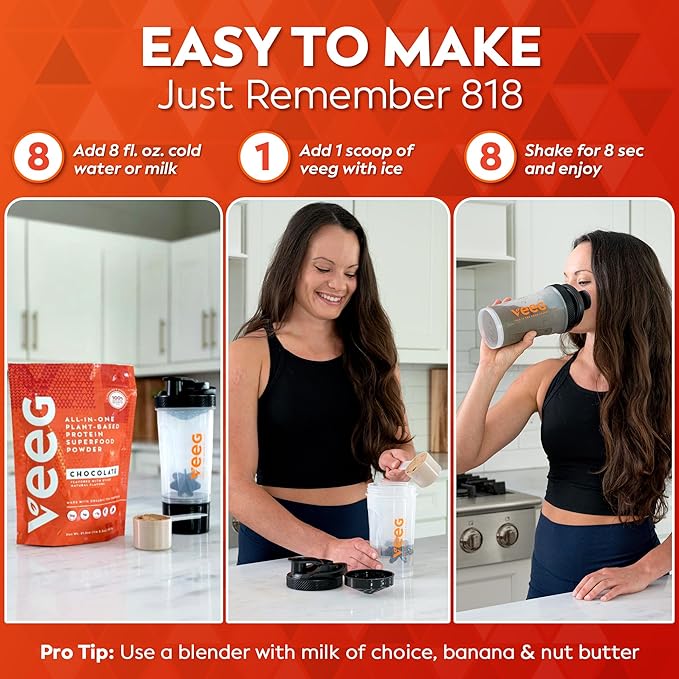 - Easy to Mix, Perfect for Any Time: Just add a scoop of Veeg organic protein powder to 8 oz of cold water with ice, shake for 8 seconds, and enjoy! Great as a meal replacement, pre- or post-workout shake, or a delicious daily snack. Use a blender with fruit or your milk of choice for a creamy smoothie. Fast, easy, and naturally energizing.
