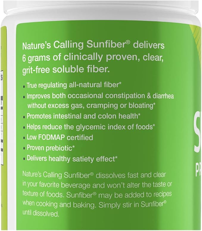 NATURE'S CALLING All-Natural Fiber Supplement | Gentle | Non-GMO | Low-FODMAP | Sunfiber | Prebiotic, 30 Servings (7.4 oz)