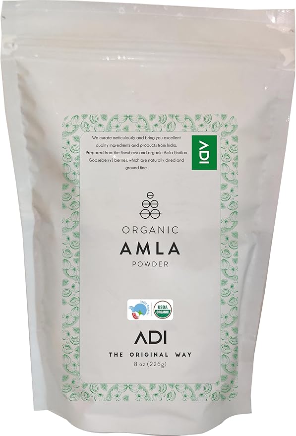 ADI Organic Amla Powder 8oz, 100% Pure Natural Amalaki Powder, Support hair growth, Indian gooseberry, Natural Vitamin C, USDA Certified