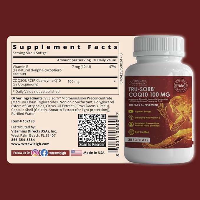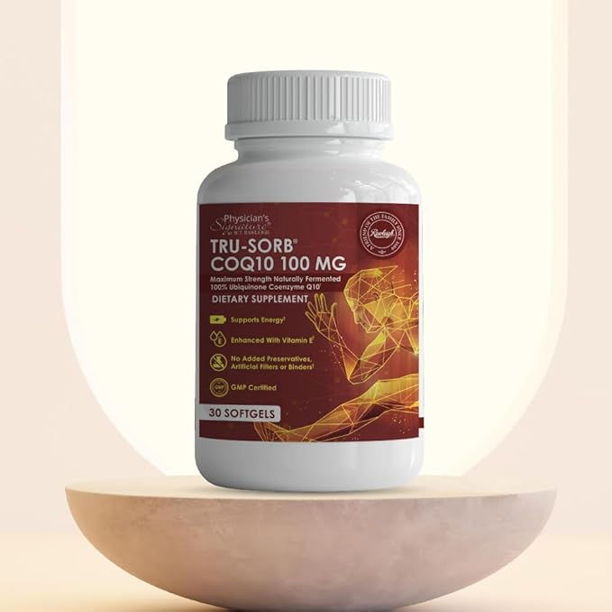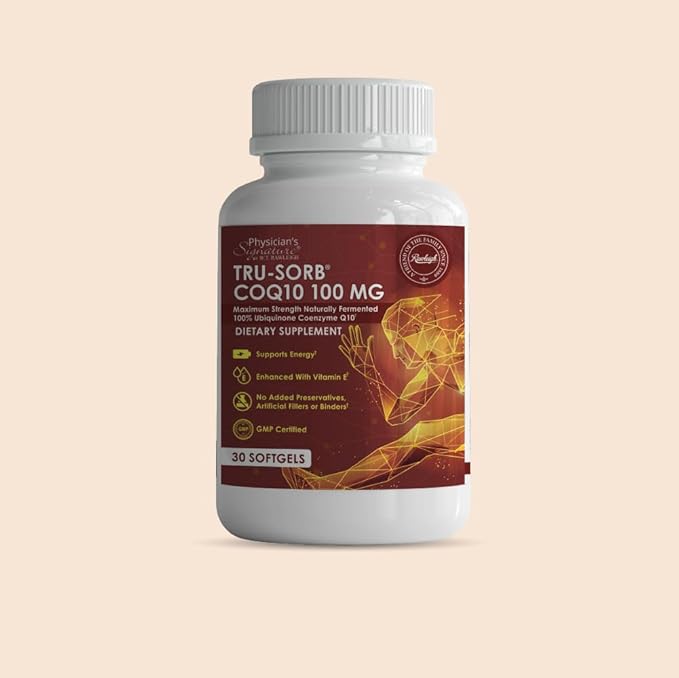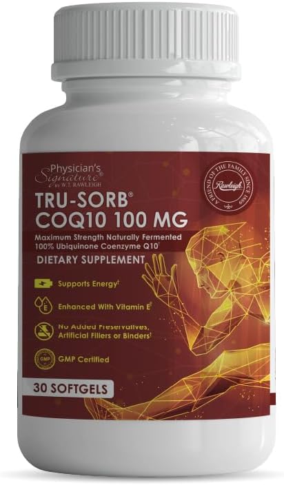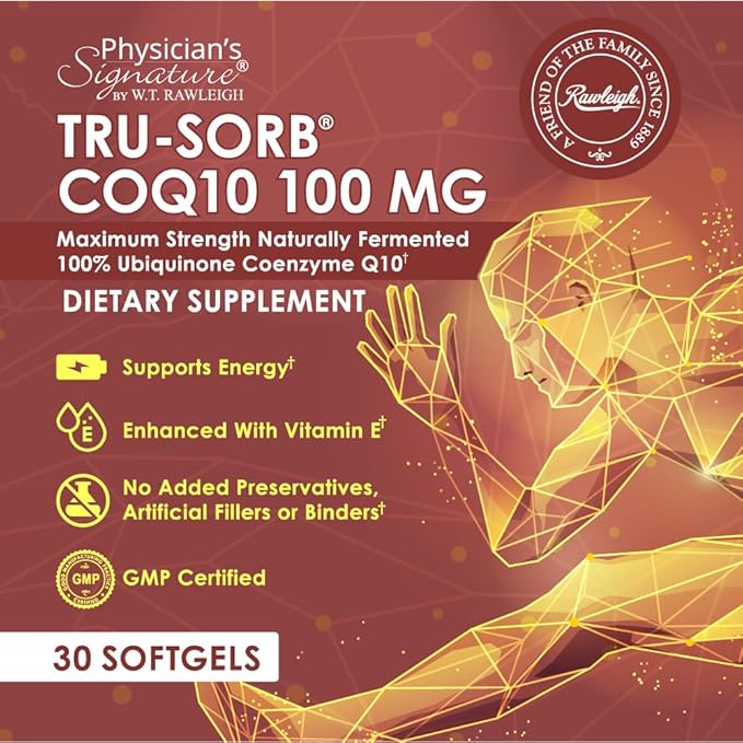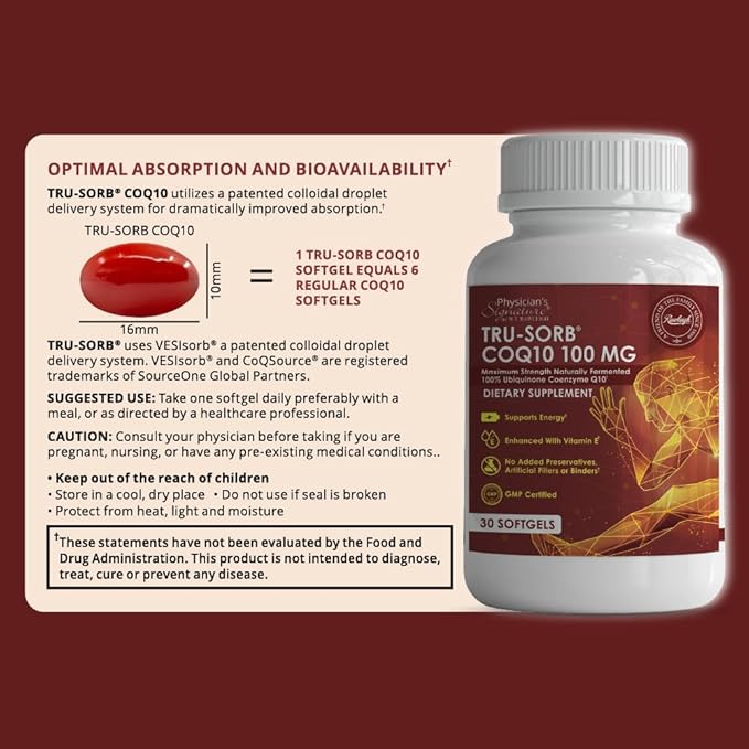 Tru-Sorb Natural COQ10 100mg: 30 Softgels - Supplement with Naturally Fermented 100% High-Potency Coenzyme q10 Ubiquinone, Vitamin E, 6X Ultra high Absorption for Cellular & Heart Health Support