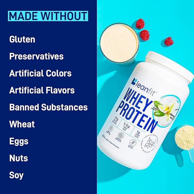 LeanFit WHEY Protein Natural Vanilla – 100% Whey Protein Powder, 24g Protein Per Serving – Grass-Fed, Gluten-Free, Low Carb, BCAAs, Amino Acid – 23 Servings, 1.83 Pound Tub