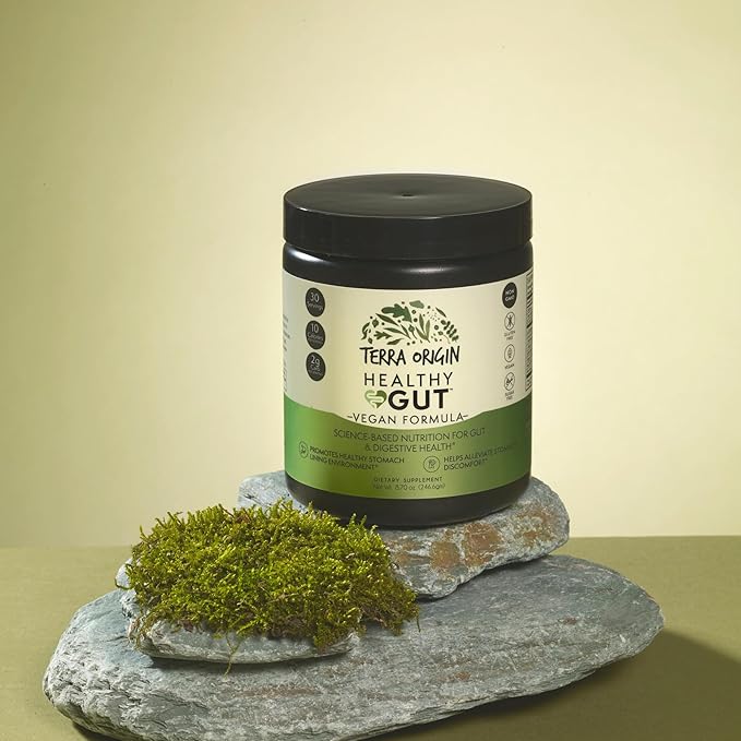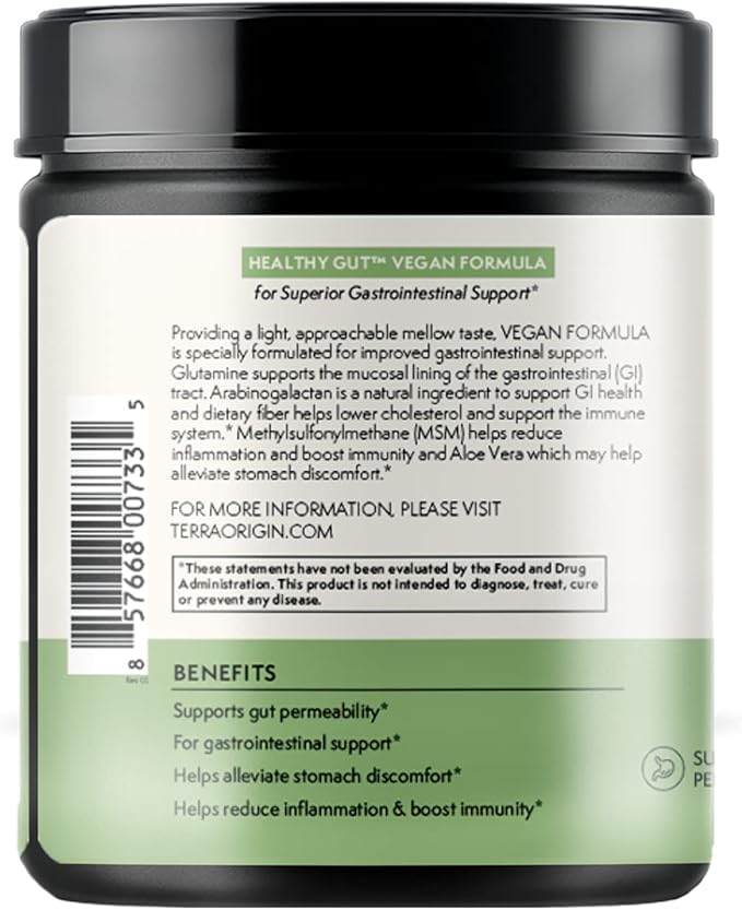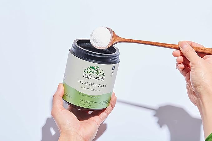 TERRA ORIGIN Healthy Gut Powder Vegan Formula | with L Glutamine, DGL Licorice Root Powder, MSM | Bloating and Leaky Gut | Gut Health for Women and Men | 30- Servings