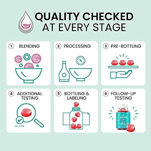 - Premium Vegan Biotin Gummies - Quality assured at every stage of production to deliver premium vitamin gummies to you. The hair nails and skin gummies are naturally sweetened with tapioca syrup and apple, are vegan-friendly, free from gluten, soy, nuts, dairy and artificial preservatives. 180 gummies for a 90-day supply