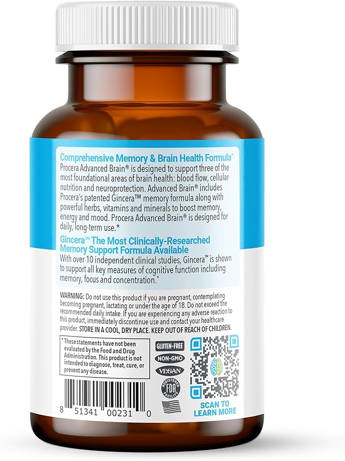 - SUPPORTS LONG-TERM BRAIN HEALTH AND LONGEVITY - Investing in Procera Advanced Brain isn’t just about achieving immediate results, it’s also about ensuring brain health for the future. With a unique blend of ingredients designed to support and protect your brain cells, this supplement helps guard against age-related cognitive decline. Enjoy peace of mind knowing you’re taking proactive steps to maintain a healthy, resilient brain that will serve you well for years to come.