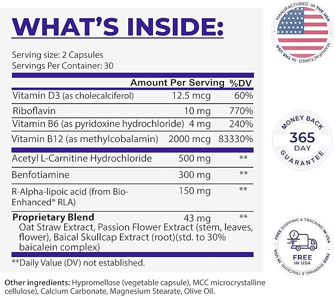 - Special Ingredients : Acetyl L-Carnitine (ALC), Alpha Lipoic Acid (ALA), Benfotiamine, R-Alpha Lipoic Acid (R-ALA), Vitamin B12 Acetyl L-Carnitine (ALC), Alpha Lipoic Acid (ALA), Benfotiamine, R-Alpha Lipoic Acid (R-ALA), Vitamin B12