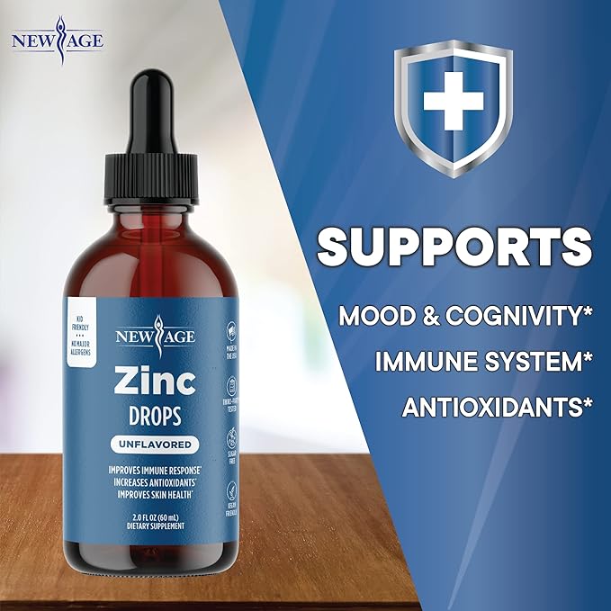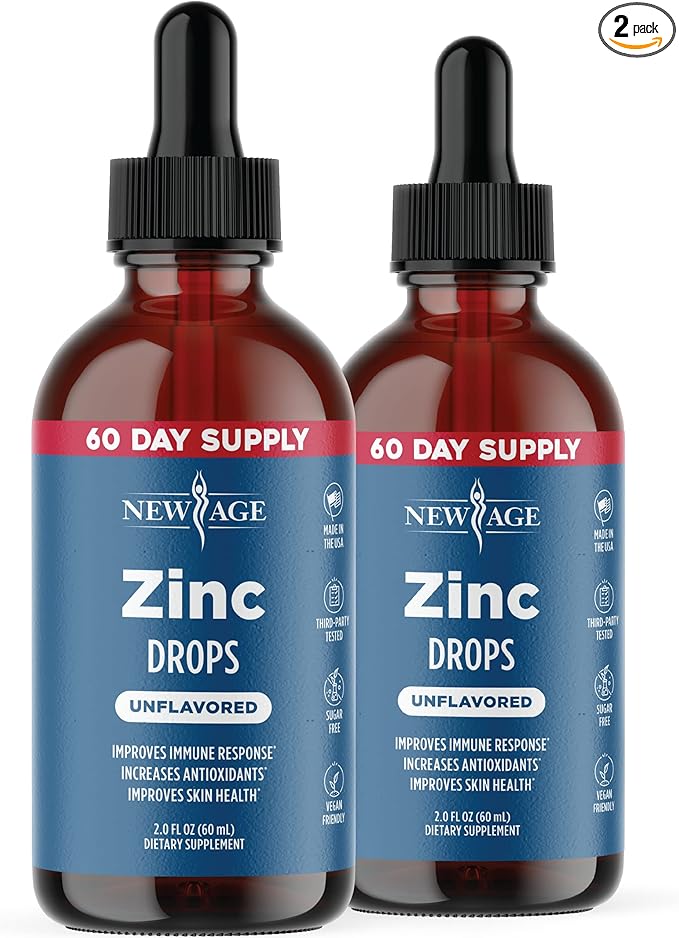 Liquid Zinc Drops for All Ages by NEW AGE - Zinc Sulfate for Immune Support, Vegan, Non-GMO & Gluten Free, 60 Day Supply, 2-Pack