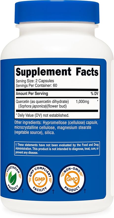 Nutricost Quercetin 1000mg, 120 Capsules - Vegetarian Capsules, 60 Servings, 500mg Per Capsule, Non-GMO, Gluten Free