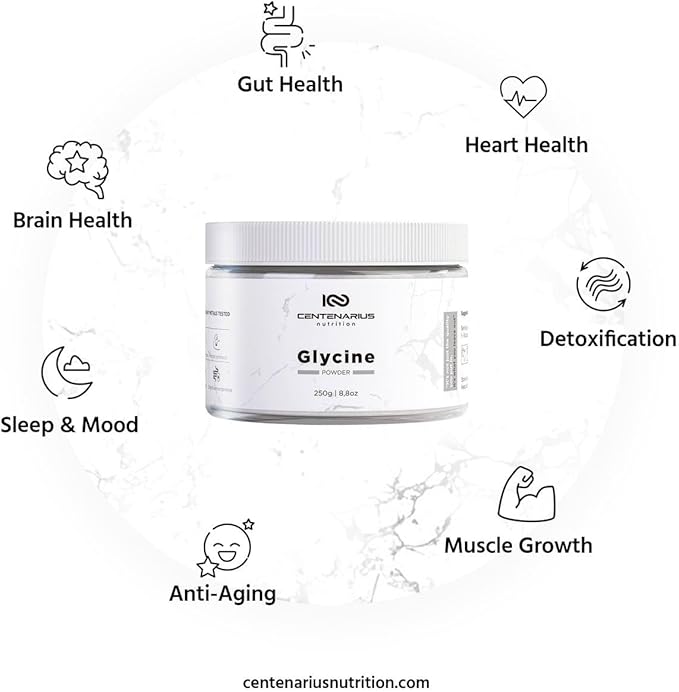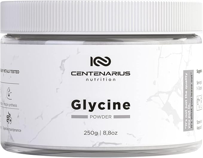 Centenarius Nutrition Glycine Powder 250g | Non-Essential Amino Acids Supplement for Post Workout Muscle Recovery, Digestion, Sleep Aid + More - Vegan, Additive-Free, Third-Party Tested
