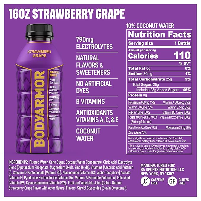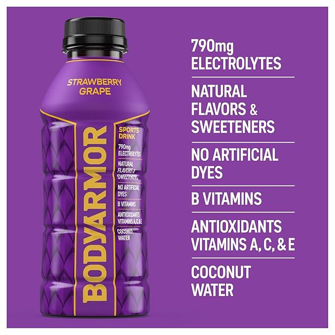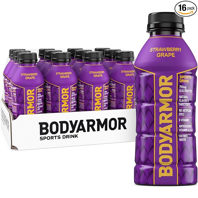BODYARMOR Sports Drink Sports Beverage, Strawberry Grape, Coconut Water Hydration, Natural Flavors With Vitamins, Potassium-Packed Electrolytes, Perfect For Athletes, 16 Fl Oz (Pack of 12)