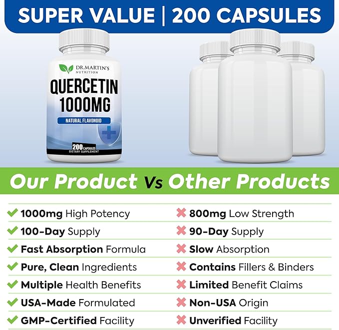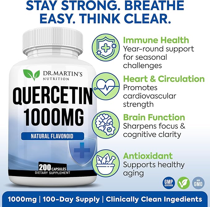 - SINUS & RESPIRATORY SUPPORT:Our Quercetin 1000mg supplement supports sinus comfort during seasonal changes. It supports healthy respiratory function, helps maintain balanced histamine levels, and supports clear breathing.