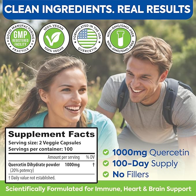 - GUT & COGNITIVE HEALTH: Quercetin helps support the body’s natural balance by promoting both gut harmony and cognitive clarity. Its antioxidant activity contributes to a healthy internal environment, while supporting mental clarity, focus, and overall vitality as you age.