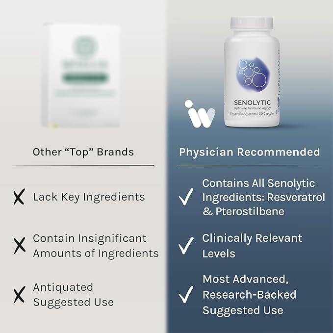 InfiniWell Senolytic Longevity Supplements - Optimize Cellular Aging, Help Support Cognitive Function & Neurological Processing - with Resveratrol, Pterostilbene & Quercetin (30 Capsules)