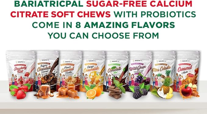 - Enjoy three (3) delicious 500 mg calcium citrate chews per day! 90 chews per bag. Each bag is a month supply for Gastric Bypass and Sleeve patients.