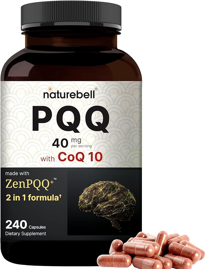 NatureBell PQQ 40mg Per Serving with CoQ10, 240 Capsules | Active Pyrroloquinoline Quinone, Highly Bioavailable ZenPQQ+ Formula – Promotes Heart, Brain, & Mitochondrial Health – Non-GMO
