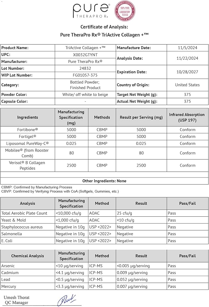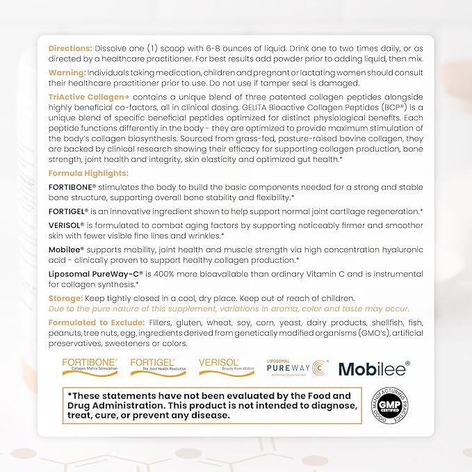 - Special Ingredients : Fortibone, Gelita Patented Collagen Peptides Types I & III, Mobilee Hyaluronic Acid, PureWay-C Liposomal Vitamin C, Verisol Fortibone, Gelita Patented Collagen Peptides Types I & III, Mobilee Hyaluronic Acid, PureWay-C Liposomal Vitamin C, Verisol