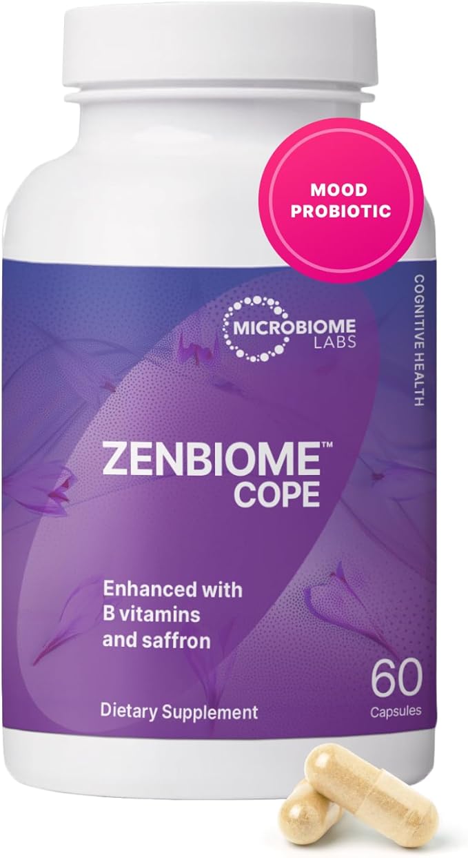 Microbiome Labs Zenbiome COPE - Probiotic Mood Support Supplement with Vitamin B6, B12 & Saffron Extract - Promotes Better Occasional Stress Coping (60 Capsules)