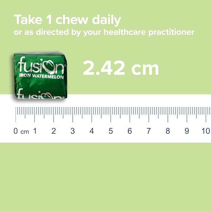 Iron Supplement for Women and Men, Watermelon Flavored Iron Soft Chew Plus Vitamin C for Iron Deficiency and Anemia, 1 Month Supply, 30 Count