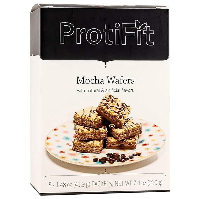 PROTIFIT - High Protein Wafer Bar, 15g Protein, Low Calorie, Low Carb, Low Fat, Trans Fat Free, Cholesterol Free, Ideal Protein Compatible, 5 Servings Per Box (Mocha)