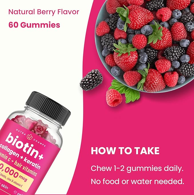 - Tasty Berry Delight: Experience vitamins that are delicious too! Enjoy the vibrant berry flavor while giving your hair, skin, and nails the nourishment they deserve.