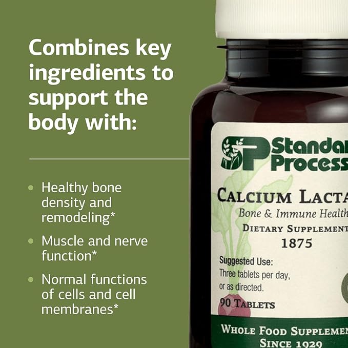 Standard Process Inc. Calcium Lactate - Immune Support and Bone Strength - Bone Health and Muscle Supplement with Magnesium and Calcium - 90 Tablets