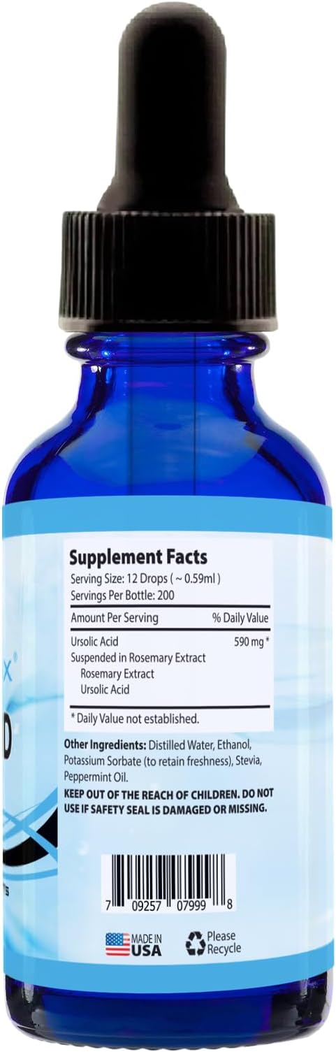 Absonutrix Ursolic Acid 590mg, 4 Fl Oz Bottle, 200 Highly Potent Servings, High Bioavailability, Quick Absorption, Third-Party Tested, GMP-Certified, Non-GMO, Cruelty-Free Products, Made in USA