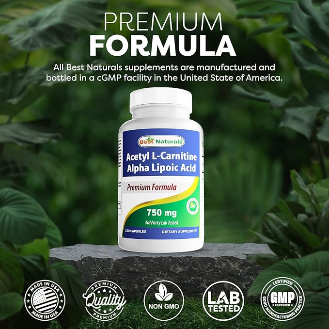 Best Naturals Acetyl L-Carnitine and Alpha Lipoic Acid 750 mg 120 Capsules (120 Count (Pack of 3))