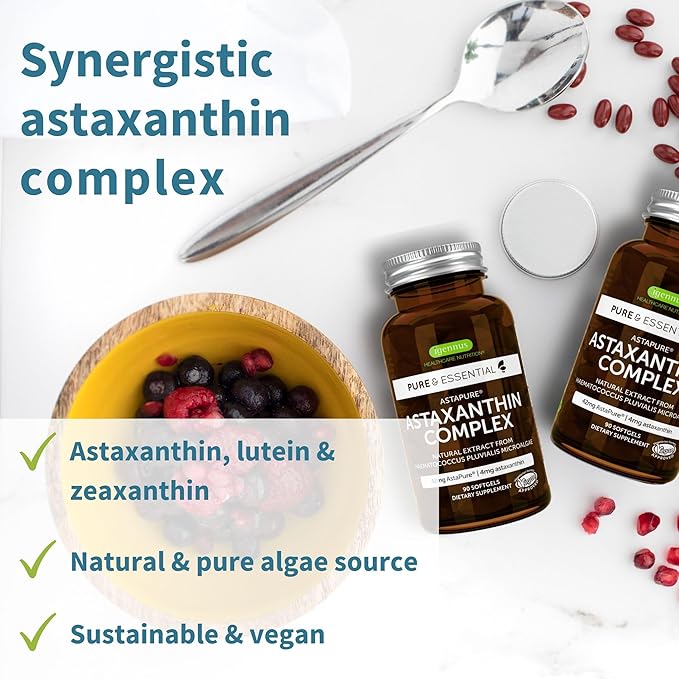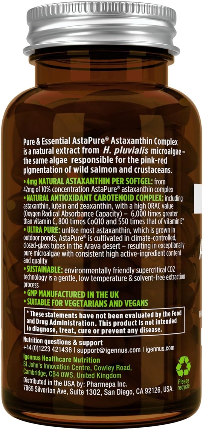 - EASY TO ABSORB & OPTIMUM DOSE: naturally bioavailable, each capsule provides a safe long-term dose of 4 mg active astaxanthin from 42 mg microalgae – helping to maintain the delicate balance of antioxidants without overloading the body