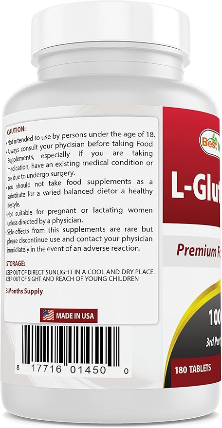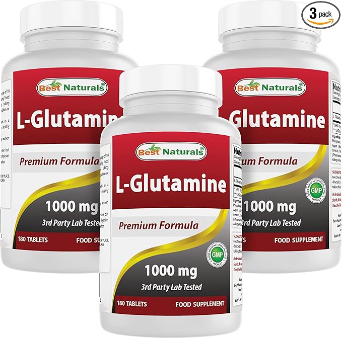 Best Naturals L-Glutamine 1000 mg 180 Tablets (180 Count (Pack of 3))