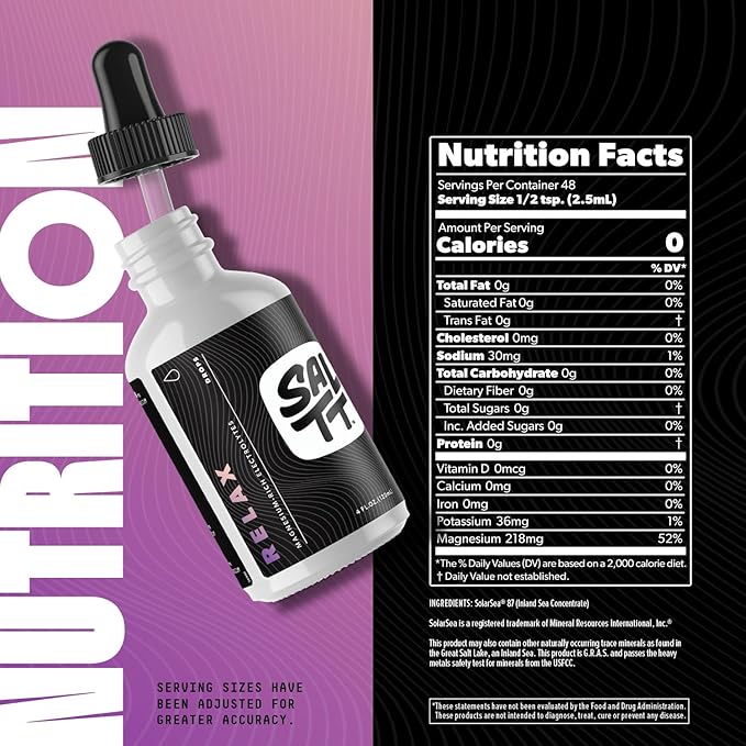 SALTT Relax Magnesium Drops - Ionic Magnesium Chloride w/Sodium, Potassium, Electrolytes - Trace Minerals Drops - Gluten Free, Sugar Free, Keto Friendly - from Utah's Great Salt Lake - 4 fl oz