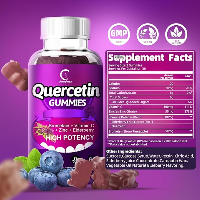 - IMMUNE SUPPORT GUMMIES - GPGP GreenPeople quercetin supplement is a natural solution to year-round wellness! Our quercetin organic immune support gummies strengthen your inner defenses, so you can stay strong and healthy no matter what season is! Enhanced with antioxidants and minerals, these yummy gummies are 3x times more bioavailable comparing to quercetin capsules or powder.