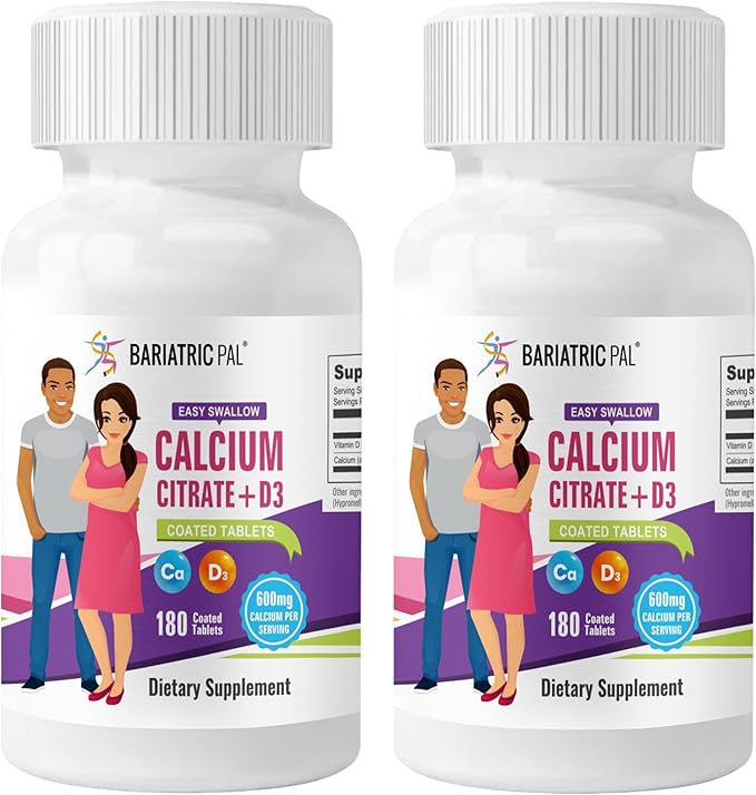BariatricPal Easy Swallow Calcium Citrate (600mg) and D3 Coated Tablets (60-Day Supply)