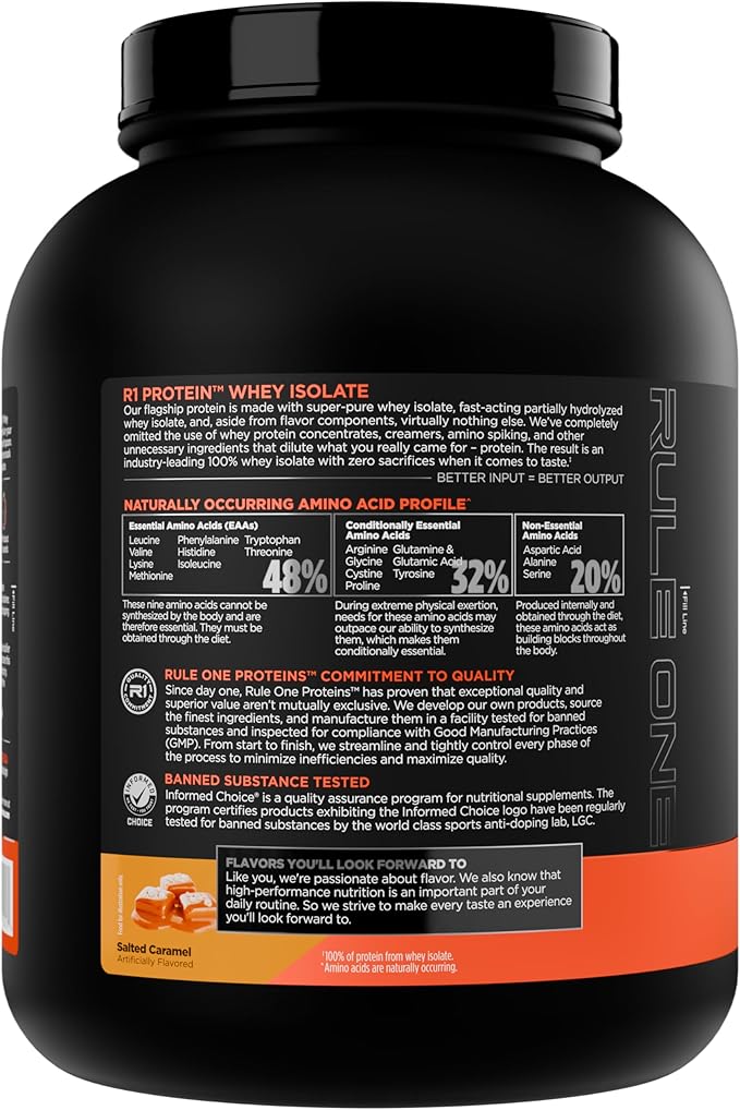Rule 1 R1 Protein Whey Isolate - with 25g Protein & 6g BCAA Exclusively from Isolated & Hydrolyzed Sources for Workout Recovery (5 Pounds*, Salted Carmel)