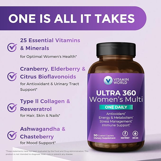 - ONE IS ALL IT TAKES: Ultra 360 Women’s Multi One Daily is designed as an all-in-one convenient caplet with 25 key nutrients to support immune health, antioxidant protection, energy & metabolism and a healthy stress response*
