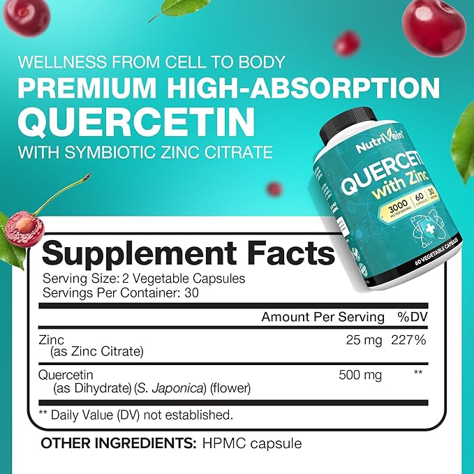 - Made in the USA with Premium Clean & Vegan Ingredients: Every Nutrivein product, including our Quercetin and Zinc Supplement, is manufactured in a cGMP-certified facility, free from GMOs and toxic additives