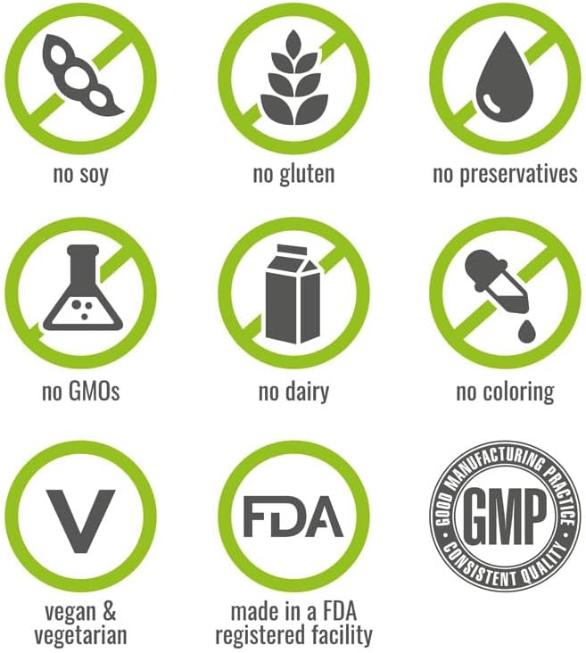 - CLEAN LABEL: No preservatives, gelatin, coloring or flavoring. Proudly made in the USA at a GMP compliant facility. Vegan, Non-GMO, and Soy Free and Gluten Free.