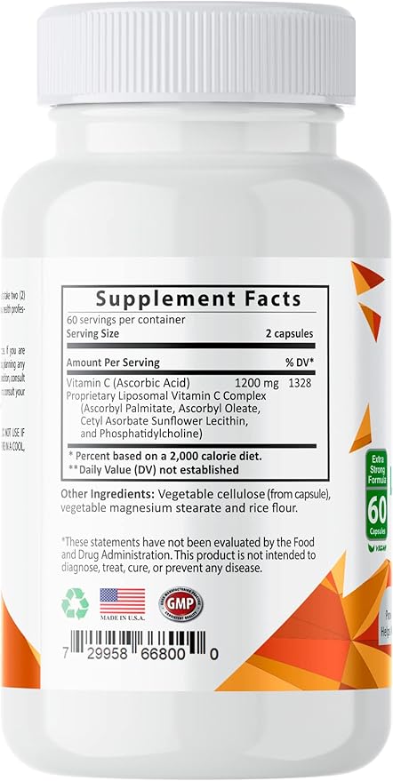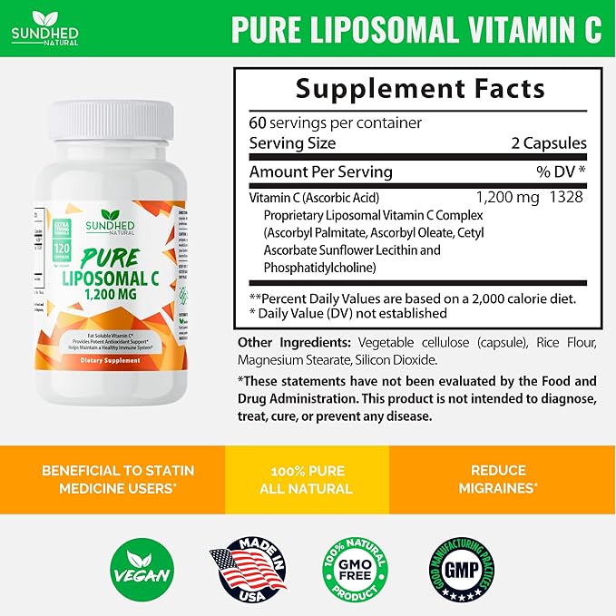 - Sundhed Natural Liposomal Vitamin C formula contains the highest and strongest potency of 1200mg of Liposomal Vitamin C per serving. We’re all about transparency and honesty, thus we list every ingredient we use. We never use GMO, preservatives, allergens or artificial flavors. We only use an FDA and GMP facility in USA.