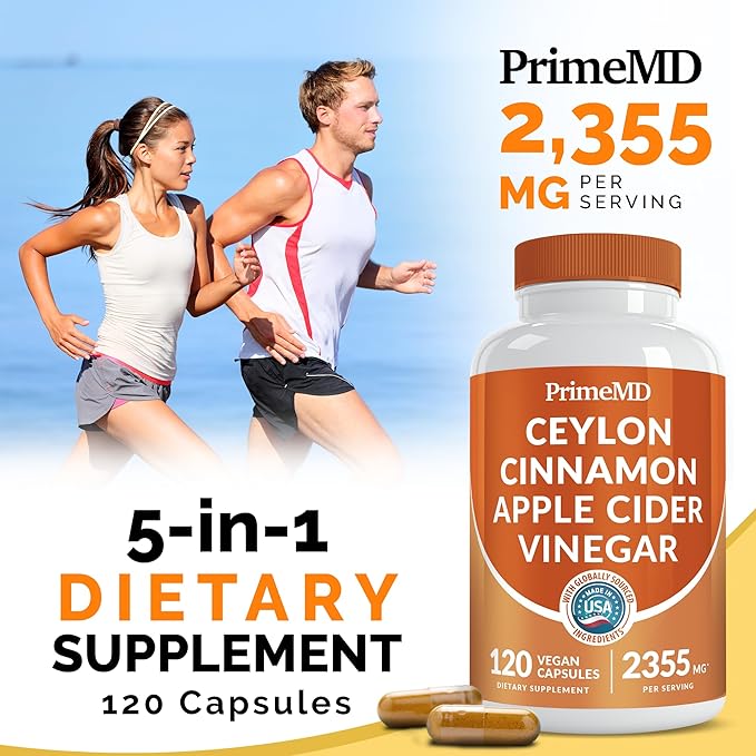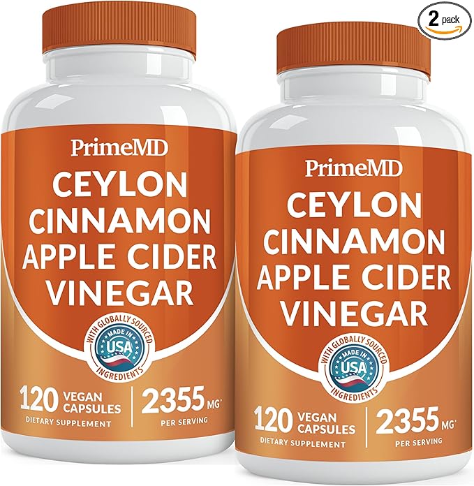 5-in-1 Ceylon Cinnamon Capsules 2355mg - Apple Cider Vinegar Capsules with Turmeric, Panax Ginseng, and Bioperine (120 Count, Pack of 2)