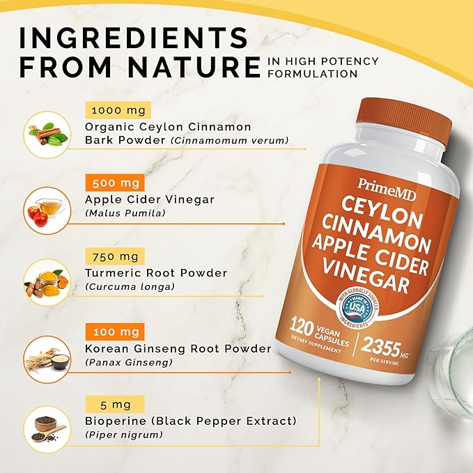 - How it works - Ceylon cinnamon supports health, Apple cider vinegar aids in digestion, turmeric has potent busting properties, Panax Ginseng aids energy for overall wellness.