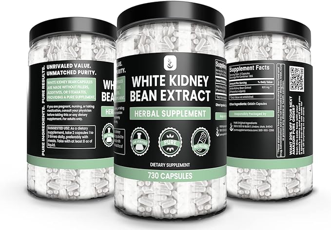 PURE ORIGINAL INGREDIENTS White Kidney Bean Extract (730 Capsules) No Magnesium Or Rice Fillers, Always Pure, Lab Verified