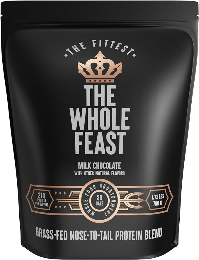 The Fittest Whole Feast Beef Protein Powder - Milk Chocolate - Grass Fed Nose to Tail Carnivore Blend Including Liver, Colostrum and Whole Bone - BCAAs - 14g Collagen, 21g Total Protein