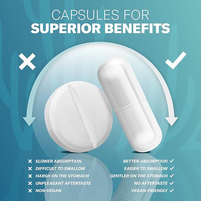 - Ultimate Superfood for Total Wellness – Experience the power of sea moss, nature’s ultimate superfood, with over 92 essential minerals and vitamins that your body needs daily. These capsules support energy levels and provide overall well-being.