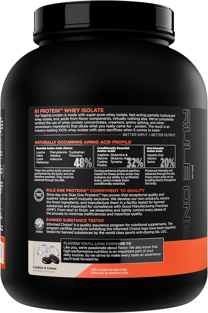 Rule 1 R1 Protein Whey Isolate - with 25g Protein & 6g BCAA Exclusively from Isolated & Hydrolyzed Sources for Workout Recovery (5 Pounds*, Cookies & Crème)
