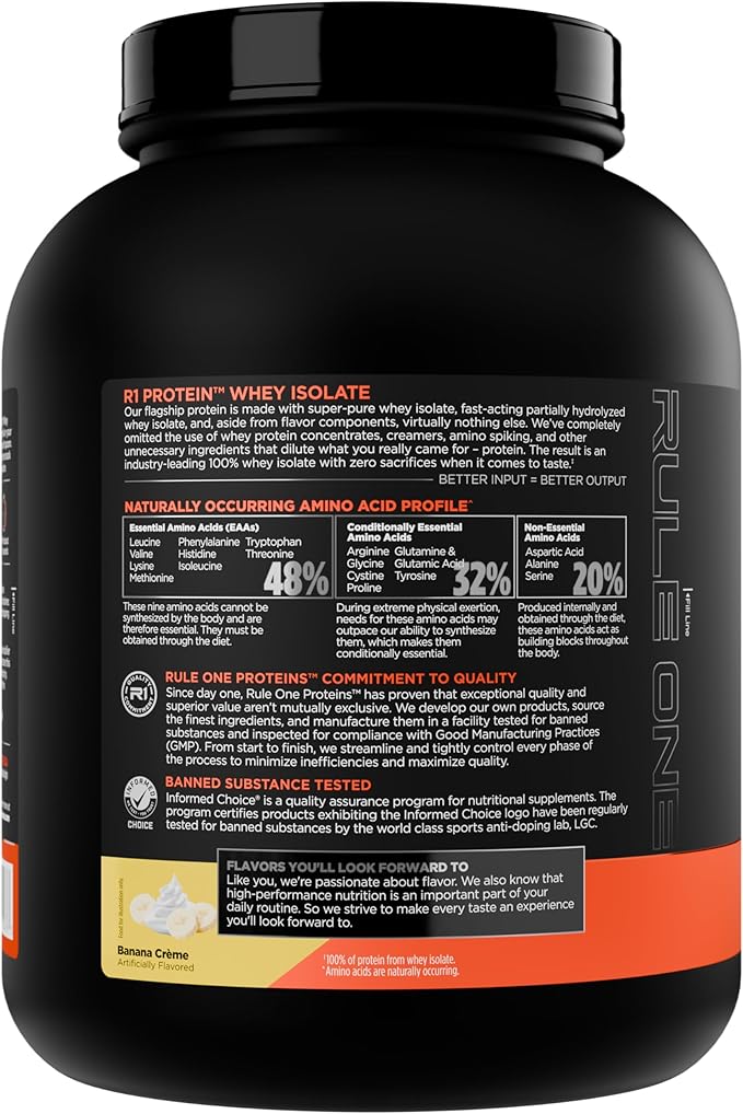 Rule 1 R1 Protein Whey Isolate - with 25g Protein & 6g BCAA Exclusively from Isolated & Hydrolyzed Sources for Workout Recovery (5 Pounds*, Banana Crème)