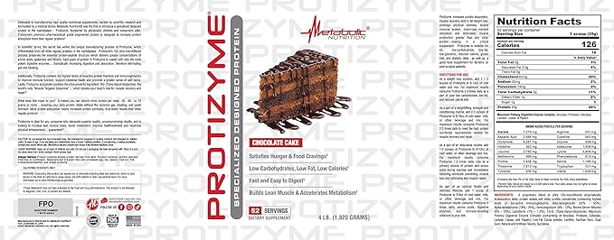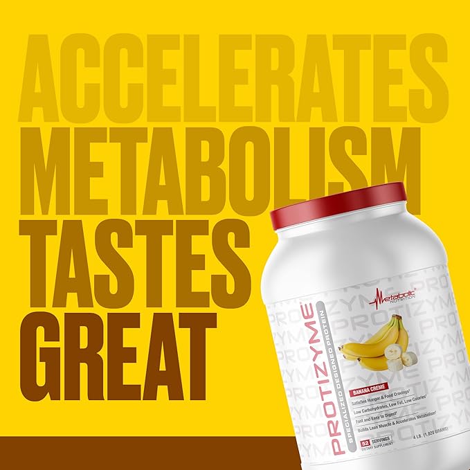 Metabolic Nutrition, Protizyme, 100% Whey Protein Powder, High Protein, Low Carb, Low Fat Whey Protein, Digestive Enzymes, 24 Essential Vitamins and Minerals, 4 Pound, 52 Servings