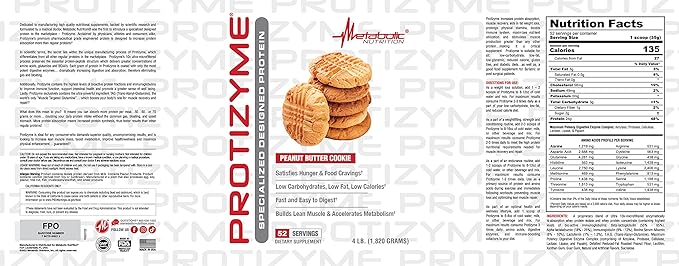 Metabolic Nutrition, Protizyme, 100% Whey Protein Powder, High Protein, Low Carb, Low Fat Whey Protein, Digestive Enzymes, 24 Essential Vitamins and Minerals, 4 Pound (52 ser)