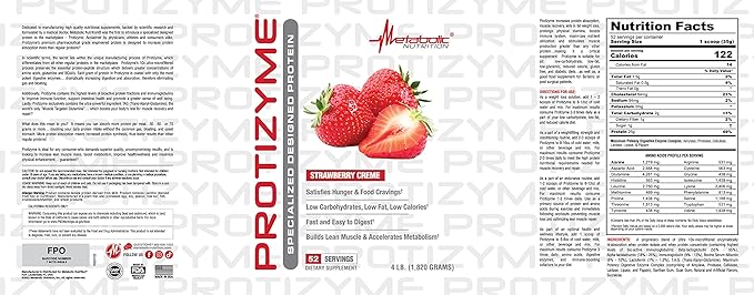 Metabolic Nutrition, Protizyme, 100% Whey Protein Powder, High Protein, Low Carb, Low Fat Whey Protein, Digestive Enzymes, 24 Essential Vitamins and Minerals, 4 Pound (52 ser)